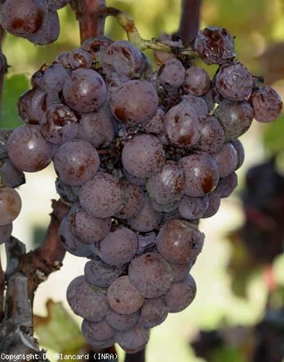 Botrytis cinerea , agent of gray rot (figures 1 and 2), is capable under certain climatic and water supply conditions of the vine to develop in a particular form called " noble rot ". The latter is at the origin of great syrupy white wines French , in particular those of the South-West (Montbazillac, Sauternes) made from Sémillon (figures 3 to 7) and sauvignon (figures 8 to 17), or selections of grains. noble Chenin de Loire or even Gewurztraminer, Pinot Gris and Riesling d'Alsace. It is also associated with certain German, Austrian, Hungarian or Swiss productions in Europe.