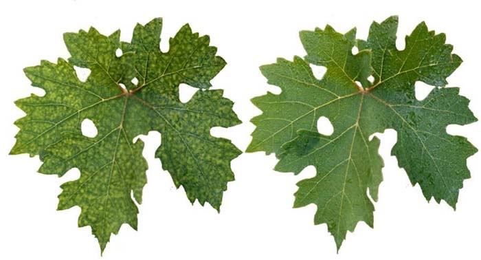 Decreased vine growth. Leaves : yellowing of the blade. |