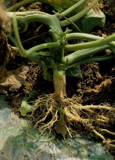 The roots and crown of the melon have a natural tendency to suberise easily when they encounter unfavorable environmental conditions in the soil, such as too low temperatures, for example, with or without excess water. The collar with the corky cortex also shows more or less significant longitudinal bursts (figure 6).