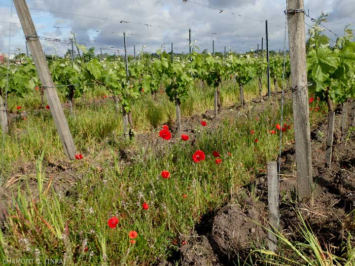 • La cobertura vegetal también puede desempeñar el papel de vegetación que compite con la vid para limitar su vigor y, por lo tanto, su susceptibilidad a las enfermedades.
