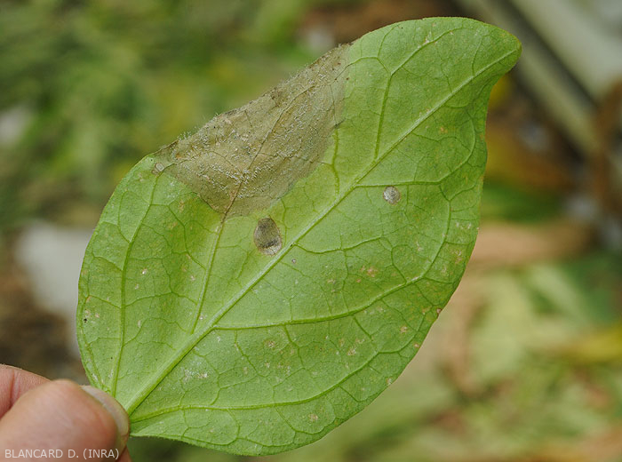 Condiciones favorables para su desarrollo : particularmente aficionado a los ambientes húmedos en invernaderos y refugios, y temperaturas medias en torno a los 20 ° C. Las plantas etioladas y / o senescentes son particularmente vulnerables. En condiciones favorables, la duración de un ciclo parece bastante corta, del orden de unos pocos días.