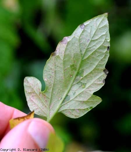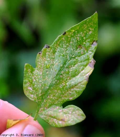 Des lésions argentées, de taille et de forme irrégulières, apparaissent sur le limbe ; elles se nécrosent progressivement et prennent une teinte beigeâtre (figures 2 à 4). Ces lésions sont aussi parsemées de minuscules points noirs matérialisant les déjections des thrips . Les folioles affectées ont tendance à se chloroser et prennent une teinte terne.  Des chutes de fleurs peuvent avoir lieu. Les sites d'oviposition de F. occidentalis sur les jeunes fruits, apparaissant sous la forme de lésions punctiformes brunes, sont entourés par un large anneau blanchâtre sous-épidermique (figure 5). Parfois, les fruits plus ou moins déformés présentent des lésions liégeuses linéaires.
