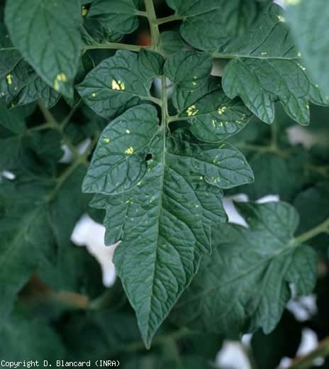 Exemple d'un virus responsable de taches jaunes sur folioles de tomate
