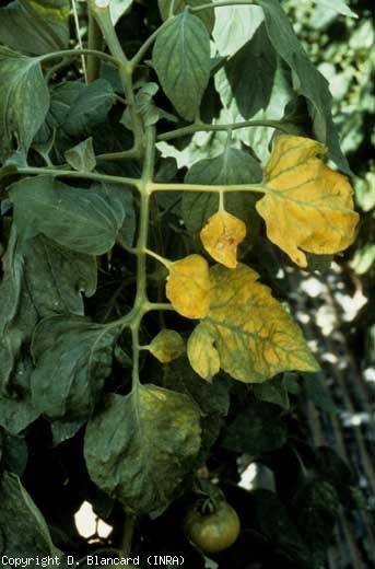 - vous êtes bien en présence d'une fusariose, mais celle-ci a pu se développer dans la plante parce que son système racinaire a été altéré. En effet, lors d'attaques sévères de nématodes ou dans le cas d'asphyxies racinaires, nous avons constaté à plusieurs reprises des attaques de F. oxysporum f. sp. lycopersici sur des plantes normalement résistantes ;