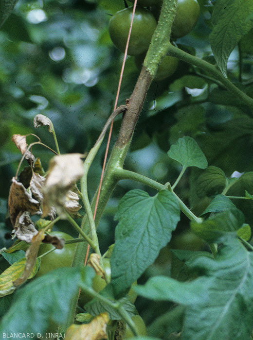 Didymella lycopersici es más conocida por las lesiones que provoca en los tallos y, en menor medida, en los frutos del tomate.