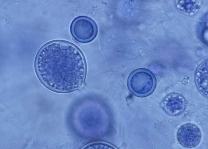 Posteriormente, produce esporangios y oosporas en el interior de los tejidos dañados o en su superficie. Se adapta perfectamente a la fase acuosa de los suelos. El agua asegura en gran medida su difusión. Las dispersiones aéreas se informan en los EE. UU. Como resultado de salpicaduras de partículas de suelo contaminadas que ocurren durante el riego por aspersión o lluvias intensas. Conducen a una gran necrosis foliar que no se observa en Francia.