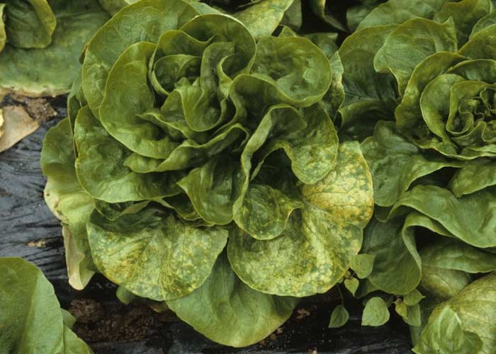 Le LRNA est transmis par un champignon du sol : Olpidium virulentus (ex Olpidium brassicae). Il n'affecte que les laitues cultivées en hiver sous abris. Les sols lourds, mal drainés et froids, favorisent le développement du champignon vecteur et l'expression des symptômes de cette virose. Il n'est pas rare d'observer cette dernière dans des parcelles atteintes par la maladie des grosses nervures (MLBVV). Leurs symptômes respectifs étant très différents, les confusions de diagnostic ne sont pas possibles (voir aussi les liens Virus des grosses nervures de la laitue (MLBVV) et Agent des anneaux nécrotiques de la laitue (LRNA)). Il n'en est pas de même avec la mosaïque jaune du pissenlit (DaYMV). Cette virose transmise par les pucerons provoque, en conditions hivernales, un rabougrissement des plantes, accompagné de jaunissements foliaires (figure 5). L'incidence de cette virose à cette période de l'année est assez mal connue, ce virus n'ayant été détecté en France qu'assez récemment (voir le lien Virus de la mosaïque jaune du pissenlit).
