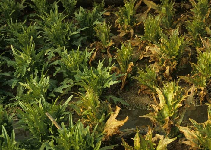 Certains pesticides utilisés dans de mauvaises conditions ou apportés malencontreusement sur les salades peuvent être responsables de symptômes assimilables à des flétrissements et/ou des dessèchements. En effet, on constate sur les salades affectées :