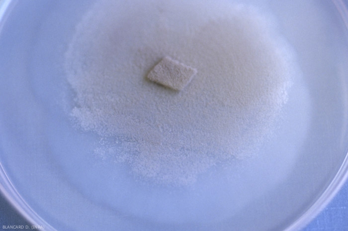 Aspecto de las colonias en medio de agar mate : tienen un crecimiento moderado. De aspecto blanco empolvado, acaban adquiriendo un color rosado, o incluso anaranjado (figura 7).