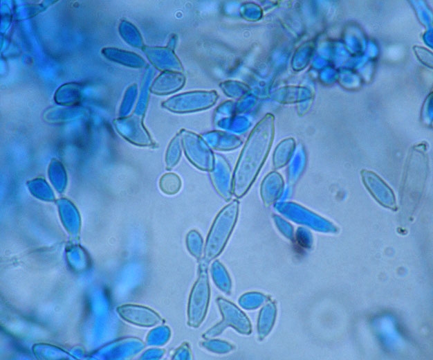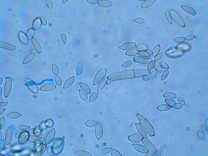 En presencia de agua libre en la planta, los conidios germinan , emiten un tubo germinativo y las hifas miceliales penetran directamente en la cutícula en menos de 9 horas, e invaden gradualmente los tejidos. Su progresión en los tejidos foliares sería intercelular y su poder patógeno se ejercería gracias a enzimas (celulasas, pectinasas ??) y toxinas. Los primeros síntomas a veces son visibles en menos de 3 días.