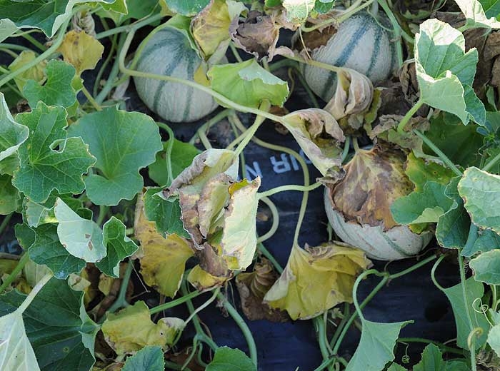 Pyrenochaeta lycopersici ataca principalmente el sistema radicular del melón. Las raicillas particularmente sensibles se vuelven marrones, se degradan rápidamente y desaparecen. Las raíces revelan localmente lesiones superficialmente corchosas en la corteza, rodeando gradualmente las raíces, que eventualmente muestran algunas mangas agrietadas y de aspecto seco (Figuras 1 y 2).
