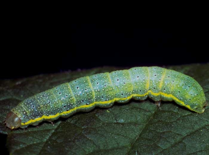 - Etapas de desarrollo : los huevos (figura 7-1), transparentes, blancos, pardo negruzco, malva, etc., con un diámetro inferior a un milímetro, se depositan solos o en grupos sobre la superficie de las hojas o varias soportes (figura 3). Posteriormente, eclosionan y dan a luz orugas (figura 7-2) de 25 a 50 mm según la especie, provistas de poderosas mandíbulas que les permiten consumir constantemente plantas, especialmente hojas (figuras 3 y 5 a 7).