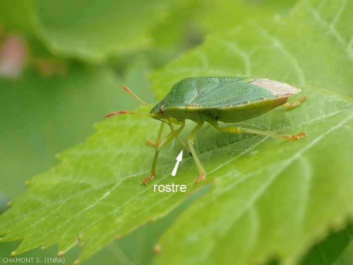Al picar insectos chupadores, las chinches se consideran en su mayoría dañinas debido a su dieta. De hecho, la saliva inyectada en la planta con su tribuna (figura 1), mata y disuelve las células alrededor de la picadura, luego se aspira el líquido obtenido. Cuando el insecto está presente en masa sobre la planta o ataca los tejidos jóvenes (brotes, hojas en crecimiento), la multiplicación de picaduras conduce a una rápida necrosis de los tejidos vegetales (figura 2). Las especies que pueden causar daños en el viñedo no son específicas de la vid, pero pueden desarrollarse allí cuando la vegetación de malezas ha sido destruida o por la presencia de plantas de relevo.