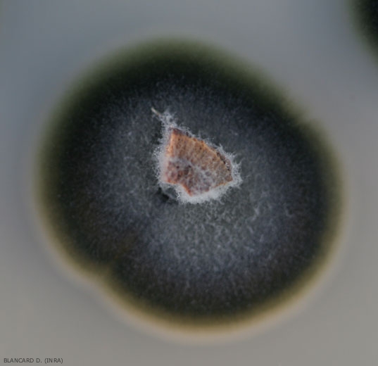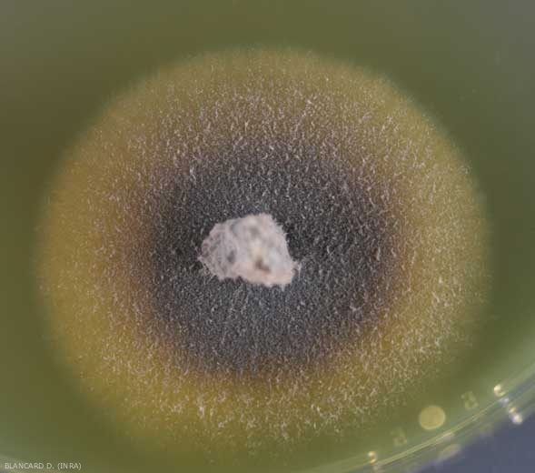 - Aislamiento, almacenamiento en medio artificial : hongo de crecimiento lento. Las colonias miden apenas 1 cm después de una semana de incubación a 25ºC en medio malta-agar. Rápidamente adquieren un color verde claro y luego se vuelven de color gris oliva a negro oliva (Figuras 4 y 5).