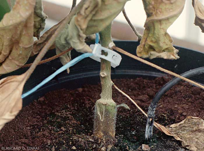 - Órganos atacados : raíces, corona, vasos, hojas, frutos