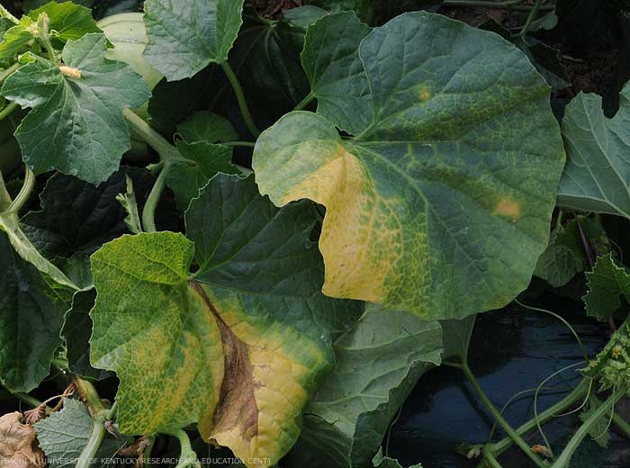 - Divers symptômes foliaires (coloration vert-terne fu feuillage, étiolement temporaire de l'apex et des jeunes feuilles, jaunissement assez diffus et hétérogène des feuilles basses, éclaircissement des nervures, un jaunissement sectoriel, flétrissement très rapide des feuilles ;