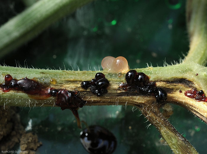 • Bioagresseurs parfois associés sur les racines : L'influence des autres bioagresseurs telluriques (nématodes à galles, autres champignons…) sur la fusariose n'est pas encore parfaitement établie.