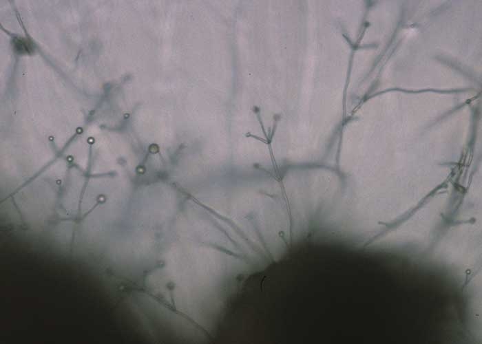 - Présence de microsclérotes bruns à noirs, à parois épaisses et de forme variable (mesurant de 15 à 100 µm) parfois visibles le long de quelques nervures.