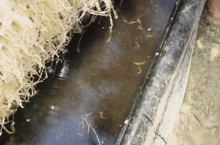 Ajoutons que le système de production en milieu aquatique (semis flottant) est très favorable au développement de certains champignons mais aussi de divers insectes. C'est, par exemple, le cas des tipules dont les larves envahissent rapidement les alvéoles des plateaux de polystyrène et se nourrissent des racines de tabac (figures 4 et 5).