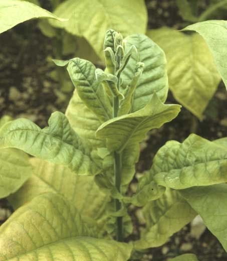 - des champignons telluriques dans le cas de plantes rabougries (consultez les rubriques concernant les Anomalies, altérations des racines et du collet), Peronospora hyoscyami f.sp. tabacina (anc. Peronospora tabacina), des champignons mycorhiziens provoquant le rabougrissement du tabac ("tobacco stunt") ;
