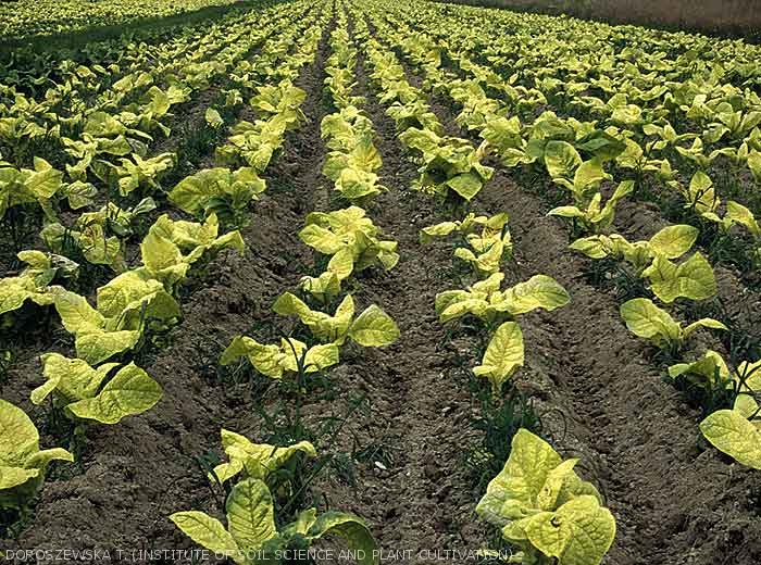 D'autres pesticides, par exemple des mélanges d'insecticides et de fongicides, des substances comme des engrais, peuvent aussi être à l'origine de phytotoxicités sur tabac. Ils provoquent aussi des jaunissements, mais également des déformations foliaires.