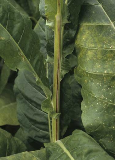 De temps à autre, on observe sur quelques pieds de tabac des éclatements longitudinaux de la tige (figure 1). Ils traduisent bien souvent un excès de vigueur des plantes pouvant survenir notamment à la suite de stress climatiques et hydriques. Généralement, ces éclatements affectent peu de plantes et sont sans conséquence pour ces dernières, des tissus cicatriciels se mettant rapidement en place.