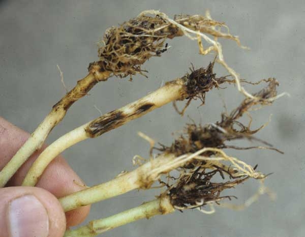 Soulignons que nous avons pu constater à plusieurs reprises que ce champignon est très présent dans l'environnement des pépinières et que des recontaminations se produisent facilement si on n'y prend pas garde. Ajoutons, qu'en plus des dégâts qu'il occasionne en pépinière, il représente aussi un grave danger pour la culture à venir. En effet, si les producteurs ne sont pas vigilants, ils infecteront leurs sols à la plantation par l'intermédiaire de leurs plants contaminés. Il est donc impératif de ne pas planter de plants contaminés.