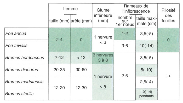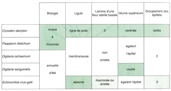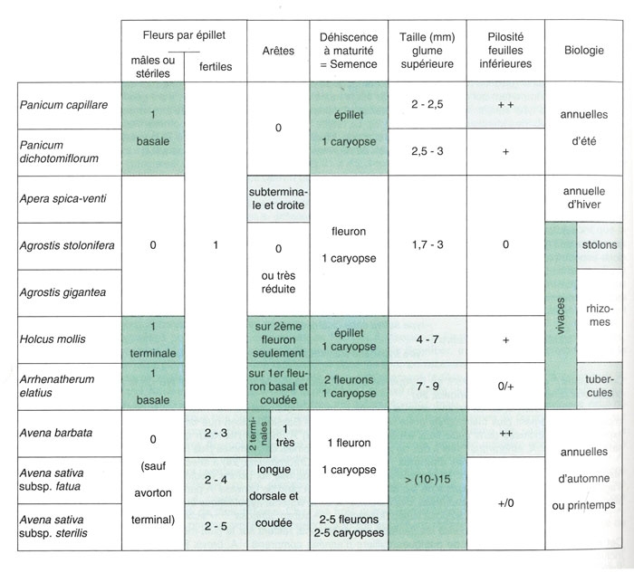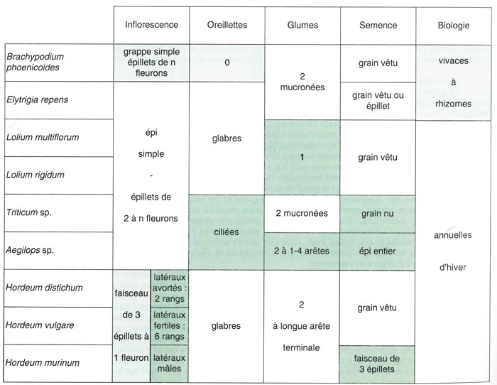 Pour la détermination de certaines graminées vous pouvez utiliser la clé proposée par C.M. Girard de l'INAPG :