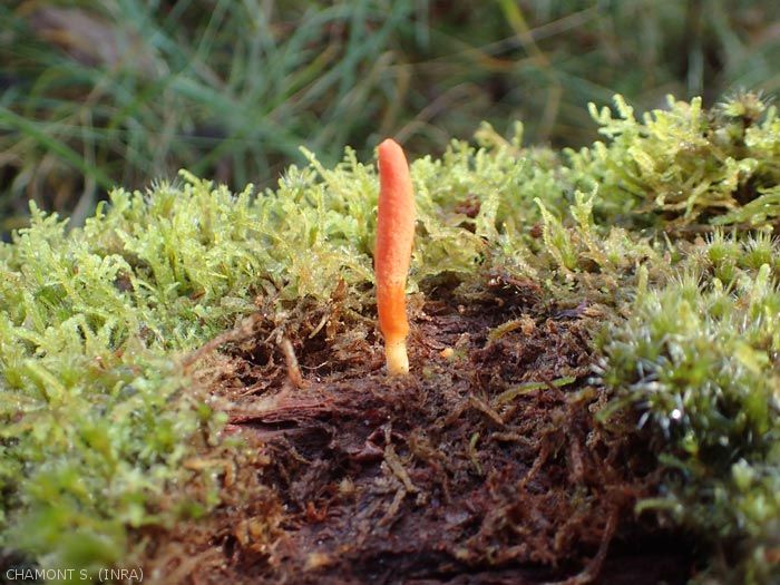 Après colonisation de l'insecte, ce type de champignon sporule sous forme d'ascocarpes allongés, cylindriques et pouvant être ramifiés. Ces ascocarpes contiennent de petits périthèces en forme de flacon contenant les asques qui libèrent les ascospores infectueuses. Celles-ci sont filiformes et hyalines.
