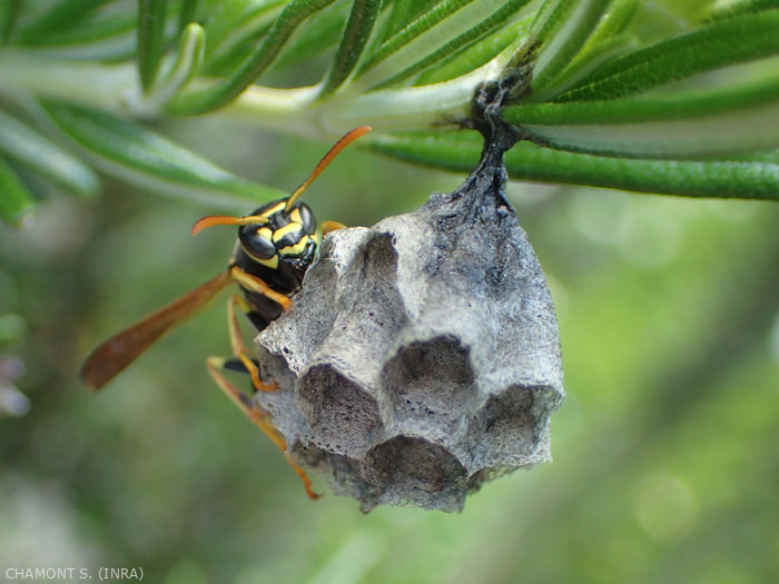 Chez les hyménoptères aculéates il y des prédateurs comme chez les shégiens (Sphecidae, Ampulicidae et les pemphrédons Crabonidae) ou les Vespidae. Ainsi la guêpe des jardins (Polistes spp.), reconnaissable à ses longues pattes en vol se nourrit de chenilles et autres larves (figure). Elle est donc considérée comme un insecte utile et ne doit pas être confondue avec les guêpes vraies, elles aussi prédatrices, comme par exemple Vespula germanica, elles aussi prédatrices. Les polistes construisent un nid à partir de fibres de bois (figure), mais qui est toujours aérien (dans la végétation, ou bien dans un lieu clos) et sans enveloppe. Sceliphron sp., Vespidae Eumeninae, nourrit ses larves enfermées dans des structures en terre (figure) avec des araignées, de même la femelle de Ancistrocerus dépose des proies paralysées comme des petites chenilles (photo) de Tortricidae, puis pond un oeuf dans une cellule fermée par de la terre (figure). La larve se nourrira de ces proies. Les espèces de la famille des Pompilidae nourrissent leurs larves avec des araignées qu'elles ont auparavant paralysées (figure).