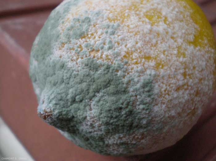 En conservation, deux champignons affectent particulièrement les Citrus : Penicillium italicum avec sa sporulation bleue, alors que P. digitatum a une sporulation verdâtre (figure 2).