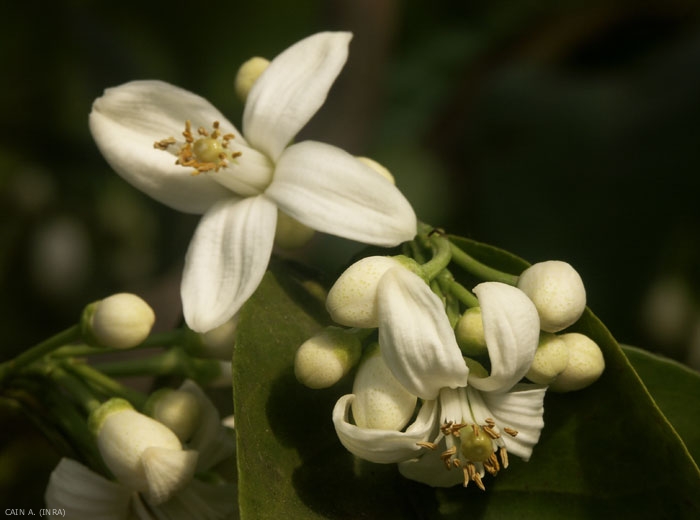 Le psylle asiatique des Citrus, Diaphorina citri est bien sur très redouté (voir plus haut). Le puceron noir des Citrus (Toxoptera aurantii), le puceron vert des Citrus (Aphis spiraecola) attaquent les fleurs et les jeunes pousses (figure 5). Parmi les lépidoptères, la zeuzère (Zeuzera pyrina) peut causer des dégâts.