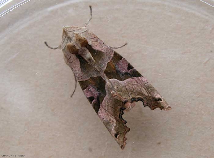 On peut citer aussi Ceramica pisi (Linnaeus 1758) anc. Mamestra pisi, la noctuelle du pois (figure 1), étudiée à l'INRAE dans le cadre de recherches sur les récepteurs olfactifs des Noctuidae. Chrysodeixis chalcites (plusie chalcite ou noctuelle arpenteuse de la tomate, tomato looper) espèce polyphage méridionale, introduite en Europe dans les années 70, peut faire des dégâts en cultures sous serre, sur tomate (figure 2). Certaines espèces comme Phlogophora meticulosa (Linnaeus 1758) (figure 3), espèce assez commune des espèces herbacées peut faire des ravages en serre éclairée sur plantes ornementales. De même, chez les Noctuidae, de nombreuses espèces sont des ravageurs des cultures tropicales (figure 4).