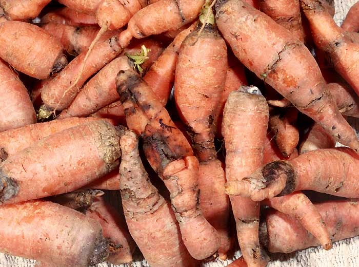 Les larves creusent des galeries sinueuses dans les racines . Les carottes attaquées ont alors une croissance ralentie ; elles sont souvent envahies par la pourriture et prennent un goût amer (figure 3). Lorsque les larves hivernent dans la racine, les dégâts sont amplifiés (figure 4).