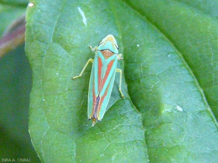 On peut encore citer pour mémoire parmi les cicadelles vectrices, Psammotettix alienus (cicadelle des graminées) qui transmet la flavescence dorée ou bien Graphocephala fennahi Young, 1977 (figure) qui par ses piqures sur les bourgeons de rhododendron transmet le champignon Seifertia azaleae (anc. Pycnostysanus, ascomycète).