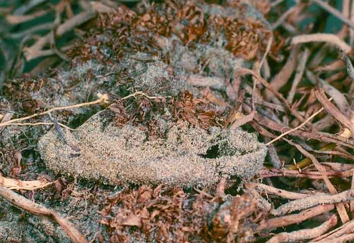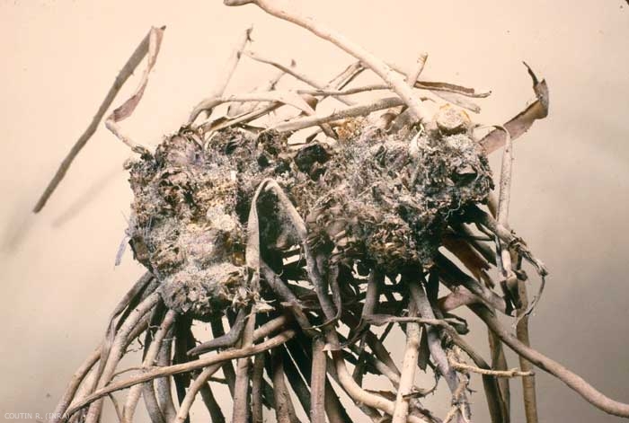 La larve s'attaque au système racinaire, dévore les bourgeons et évide les racines (figure). Elle provoque la disparition des plantes qui se dessèchent dans le courant de l'été ; les jeunes plantations sont particulièrement vulnérables.