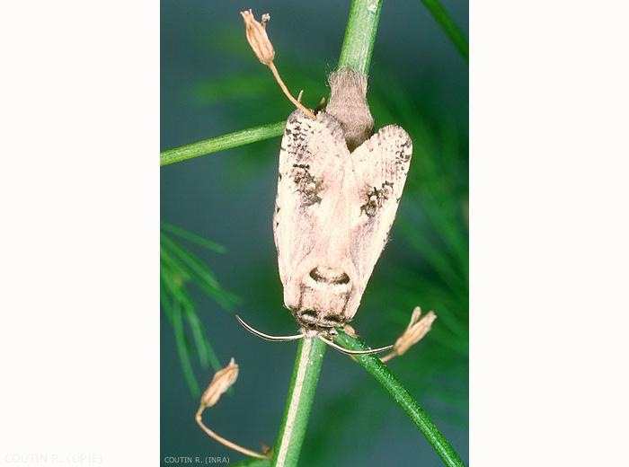 A l'automne, elles tissent un cocon plat et ovale à l'aplomb de la griffe, à des profondeurs variant de 5 à 50 cm et hivernent en état de diapause. Ce fourreau est orienté verticalement et localisé principalement dans la butte de récolte. La durée de développement de la nymphe est de 3 à 5 semaines. L'activité estivale des chenilles, qui correspond à leur période de nuisance, dure 1 à 1 mois et demi. La période de vol varie de la fin mai à début juillet pour les régions côtières, de la mi-juin à la fin juillet pour l'intérieur.