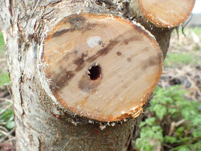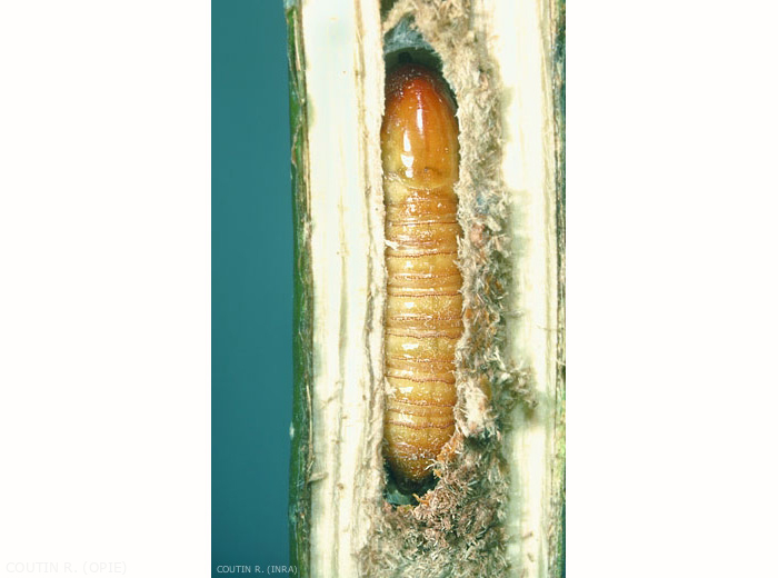 Au printemps, la larve poursuit le forage de sa galerie uniquement dans le bois et souvent au centre du rameau. La nymphose intervient d'avril à juillet (figure).