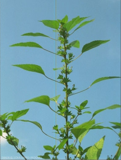 Xérophyte, cette espèce est originaire du Nord de l'Amérique (---> plus d'infos). Cette adventice est présente essentiellement en Italie, où affiliée aux cultures de maïs, sorgho ou soja, on la trouve le long de la plaine du Pô. Elle n'est pas présente en France.