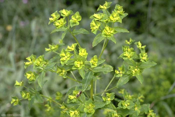 - dénominations européennes : broad-leaved spurge (GB), Breitblättrige Wolfsmilch (D), lechetrezna reduela (E), euforbia rognosa (I), (P), brede wolfsmelk (NL)