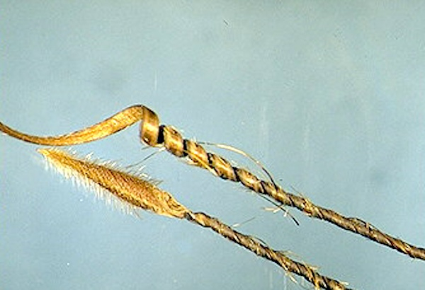 Forme : semence fusiforme, conique, hérissée, munie de longs cils sur le 1/3 inférieur de l'arête. Zone entre la semence et l'arête (fovéole) glanduleuse