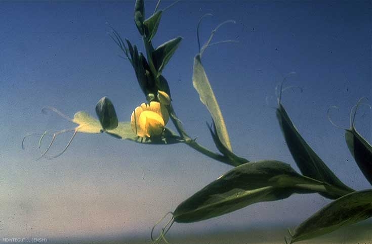 Feuille dont le pétiole est aplati et dilaté comme le limbe d'une feuille, contourné sur lui-même à la base, sans folioles dans les feuilles moyennes et inférieures, portant une ou plusieurs vrilles ; les feuilles supérieures portent insérées sur le pétiole aplati, 1 à 4 petites folioles ovales alternes. Stipules ovales, lancéolées ;