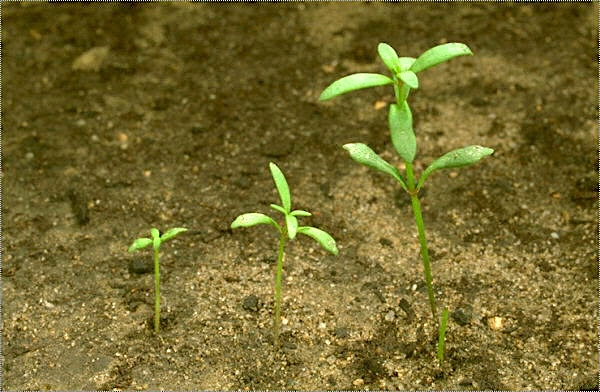 Cotylédons élancés, à faibles échancrures au sommet ;