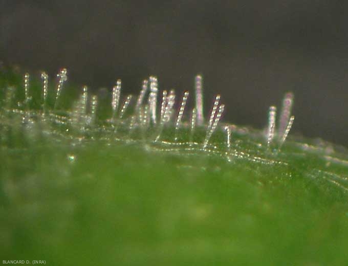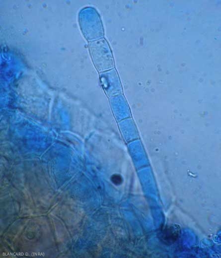 La reproduction et la dissémination du champignon s'effectue par la formation, à la surface des organes colonisés, de conidiophores à l'extrémité desquels sont produites des conidies en chaînes de 6 à 8, ovoïdes ou en forme de tonnelet. La taille des conidies se situe autour de 19-25 X 9-14 µm (figure 3).