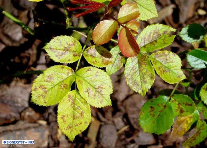 A la suite des premières contaminations printanières, les reproduction et dissémination de Peronospora sparsa sont assurées par la production de sporangiophores, et donc des sporanges, pendant une grande partie de la période de végétation. Le sporange germera en produisant un tube germinatif qui permettra l'infection de nouveaux tissus.