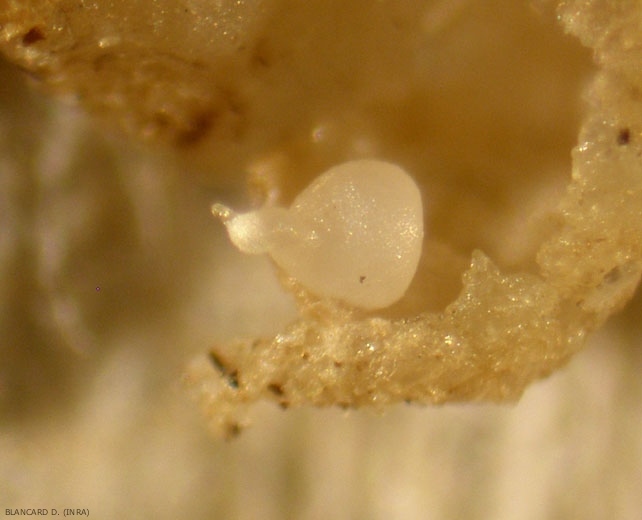 La masse des oeufs qui perce à travers le cortex, devient alors visible à la surface de la racine.