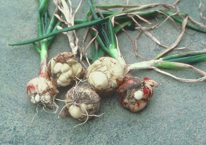 Profitant de l'humidité lors des pluies ou de la rosée, les larves (figure 3) et les adultes migrent hors du sol et se déplacent à la surface des tiges et des feuilles dans la pellicule d'eau qui les recouvre. Ils pénètrent à la base des tiges ou dans les écailles des bulbes, creusent des cavités en dissociant les cellules.