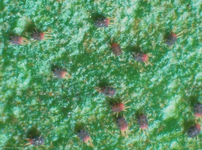 Les organes attaqués jaunissent, blanchissent (figure 2) ou prennent un aspect bronzé. En cas de pullulation, on observe une défoliation partielle des arbres, surtout si le temps est sec et venteux.