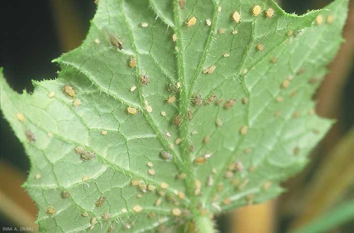 Les dégâts sont provoqués par le prélèvement de sève et l'émission de miellat. Les feuilles de l'hôte deviennent jaunes puis se déforment et finissent par se dessécher. La croissance de la plante peut-être réduite.