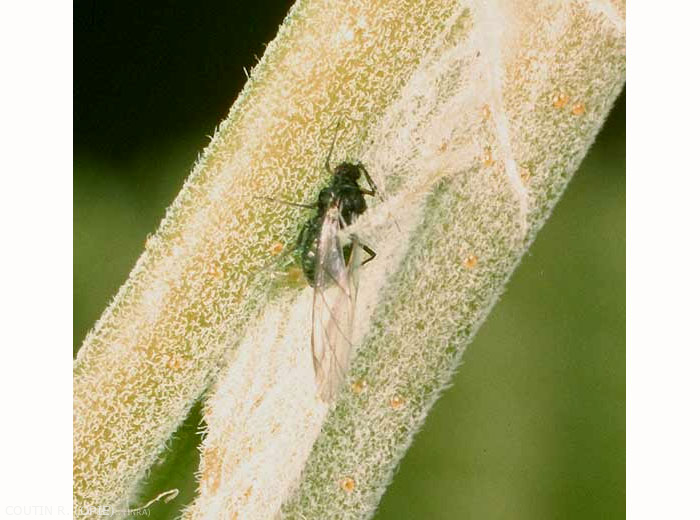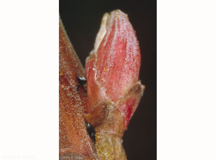 Ce puceron qui est monoécique envahit, dès le printemps, la face inférieure des feuilles terminales de son hôte. En automne, les oeufs noirs sont pondus au voisinage des bourgeons (figure 1).